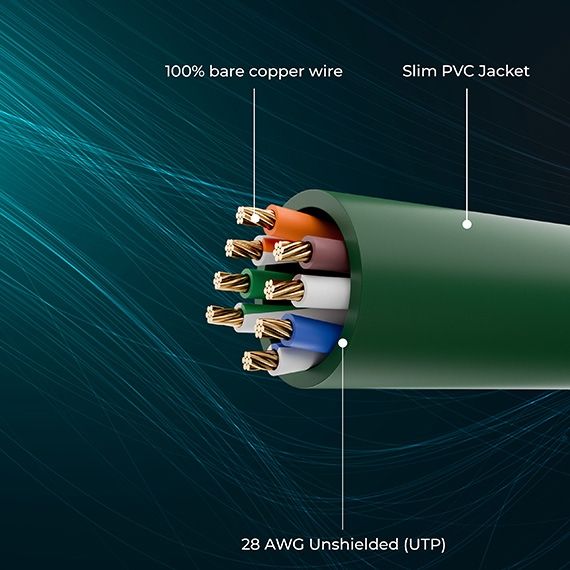 Slim Cat6a 6FT Green Cable